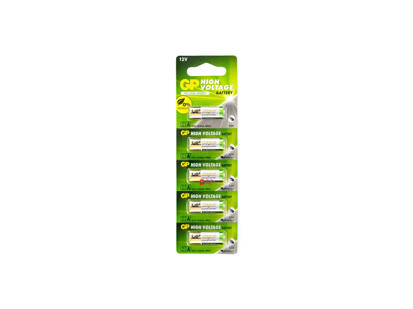 La batería alcalina de alto voltaje GP 23A es una batería pequeña, cilíndrica, de 12 voltios clasificada a una capacidad nominal de 55mAh. Con sólo 10,22 mm de diámetro y 28,5 mm de altura, esta batería pequeña y ligera pero potente se utiliza en muchos dispositivos electrónicos pequeños, especialmente en dispositivos de control remoto como mandos a distancia de alarma de automóviles, juguetes y abridores de puertas de garaje, donde el voltaje relativamente alto de la batería garantiza una mejor transmisión de radiofrecuencia entre el controlador y su dispositivo receptor.