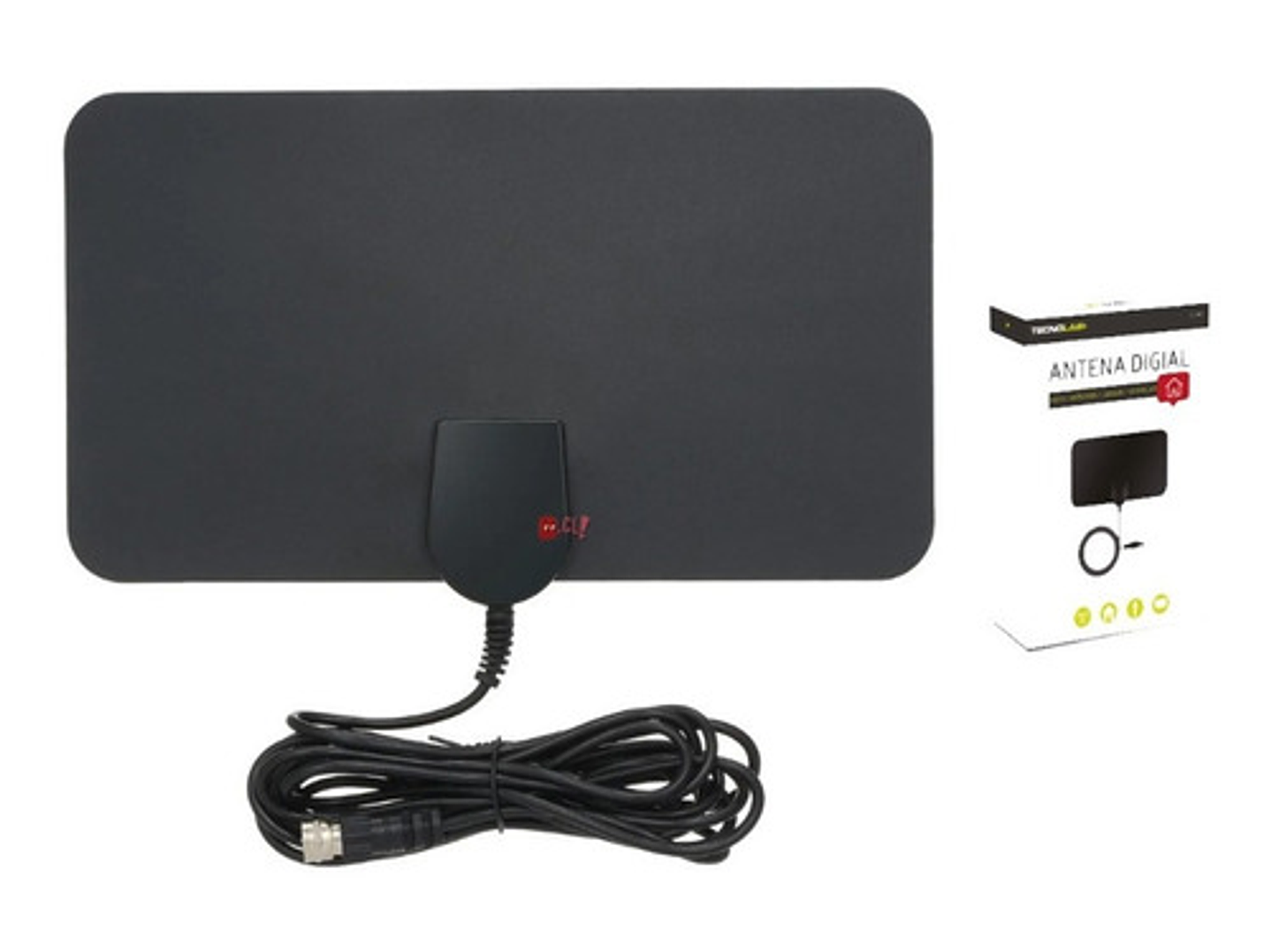 Antena HDTV Ultra Plana, Tecnología de señal clara con circuito para sonidos extremadamente bajos. Recibe señales locales full HD y todas las señales de radio DAB, señales locales y regionales VHF y UHF. Amplificador externo para ajuste de señales débiles ó fuertes.