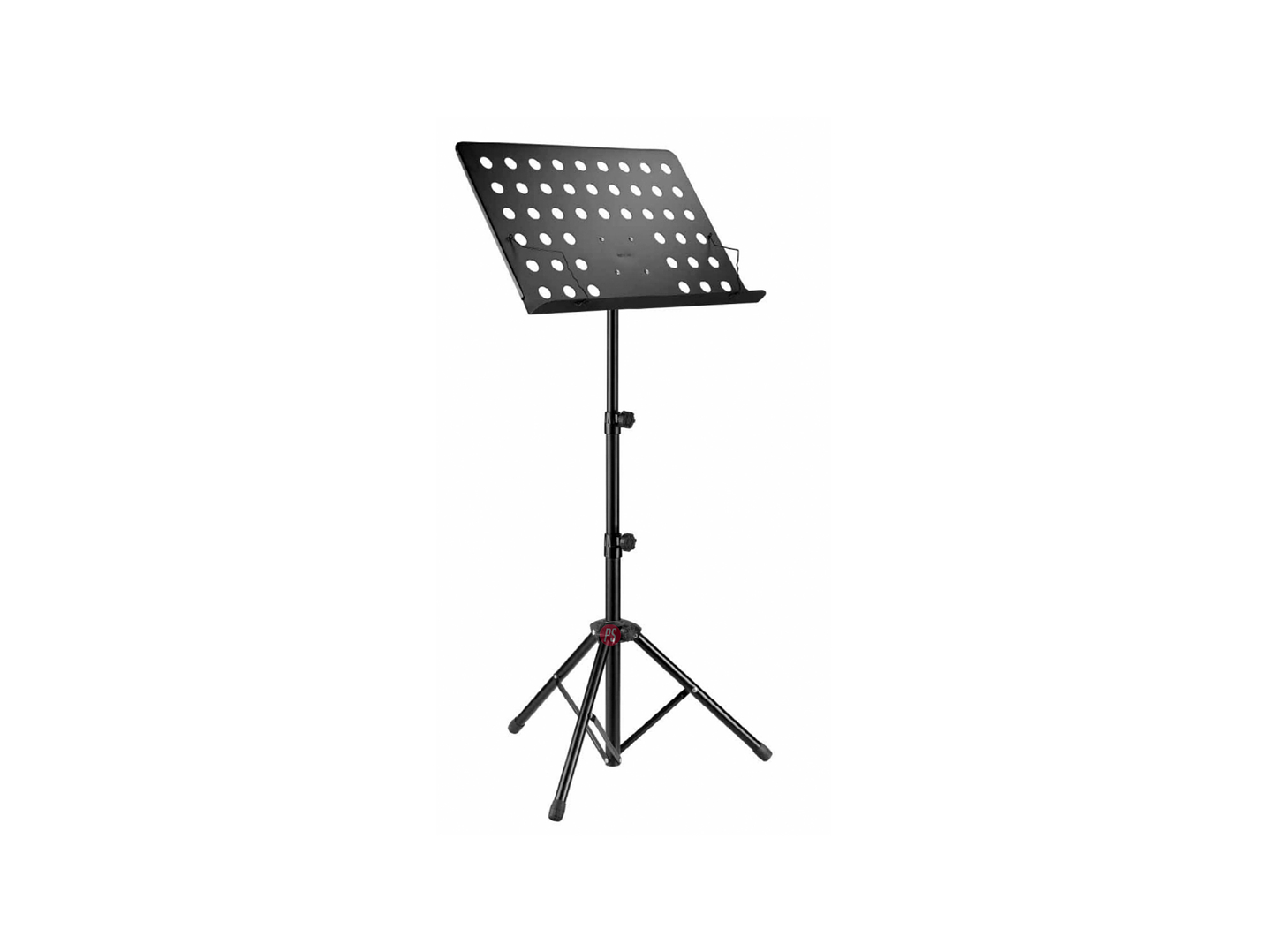 Tiene una base para partitura perforada y orientable y está diseñado para soportar grandes cargas. Cuenta con un nuevo sistema de sujeción para un rápido ajuste de altura y una amplia base trípode.