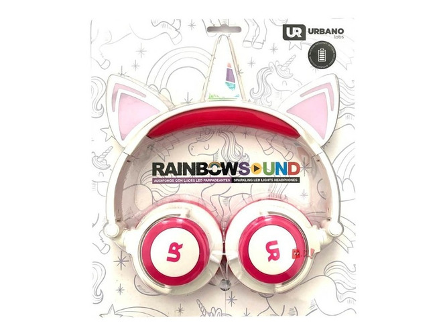 - Audífonos Unicornio Niños Rainbows Sound Led Rosado - Ps