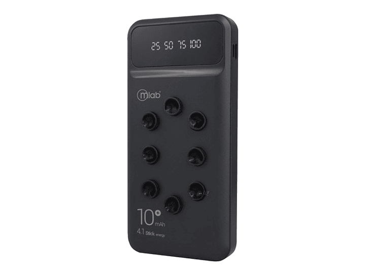 Batería portátil recargable de 10.000mAh de capacidad Incorpora ventosas, podrás cargar y usar tu teléfono al mismo tiempo. Incorpora pantalla con indicadores de carga y conectores compatibles.