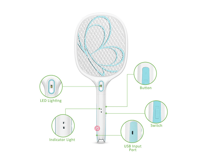 Mata Mosca Y Mosquitos Raqueta Recargable - Ps