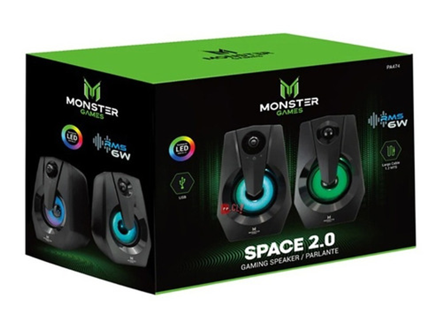 Parlante Pc Monster Games Space 2.0 Iluminación Rgb 6w - Ps