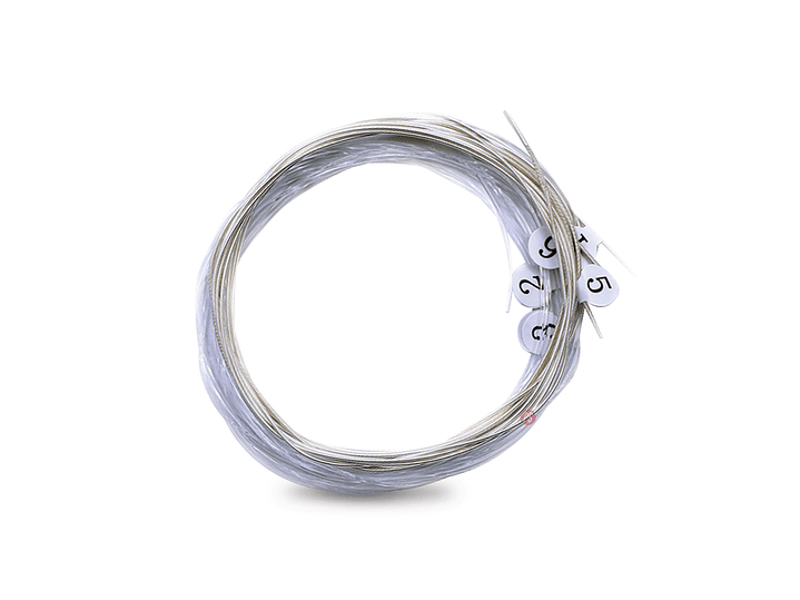 Hechas de nylon de cristal. El núcleo interno está hecho de material de nylon de alto nivel. El material exterior está hecho de cobre electro-plateado. Puede durar 3-4 veces más que una cuerda normal. Su tono es claro, melodioso, suave y sensible.